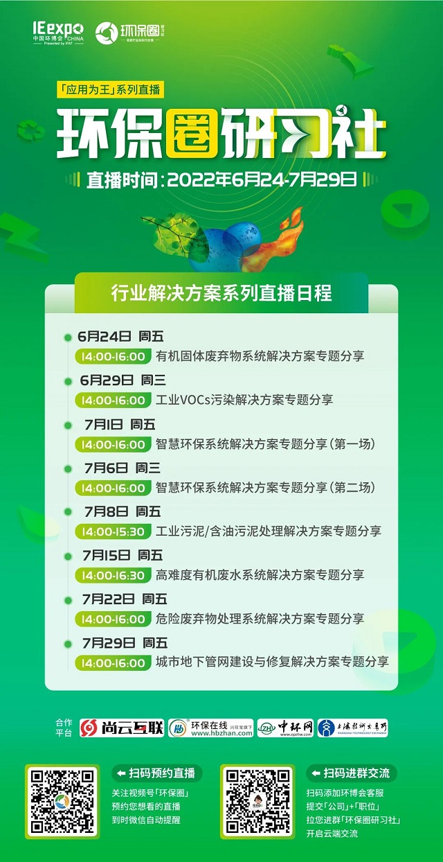 7月15日(星期五)下午14:00-16:30,環保圈研習社“應用為王”系列直播高難度有機廢水系統解決方案專題分享,有幸邀請到了艾珍機械、求是膜、工源環境、久吾高科、上海濟儉5家企業的技術專家做客直播間,與我們共同探討“水環境”污染處理問題,并為大家帶來高難度有機廢水的節能處理、資源化利用、零排放處理等相關技術及解決方案分享。