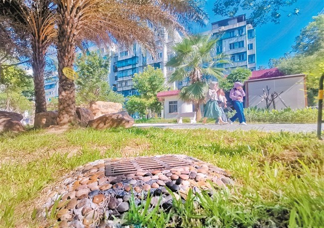 作為我市老城區,金平區因地制宜引入海綿城市理念,實現老舊小區雨水控制能力的提升,以及小區環境的整體改善。桃園住宅小區使用至今已近30年,設施老化,綠地率偏低,小區內基本是雨污合流,管道破損嚴重。在老舊小區改造中,項目重建了小區排水管網系統,實現雨污分流,同時結合海綿城市建設理念,將建筑樓棟間硬質鋪裝改為透水鋪裝,地上停車位改為植草磚生態停車位,在小區中心小游園處設置雨水花園,降低綠地標高,拆除原路側石,將附近道路徑流水匯入雨水花園。