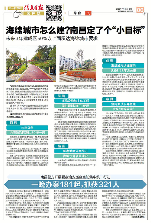 記者獲悉,近日,南昌成功入選“十四五”第二批系統(tǒng)化全域推進(jìn)海綿城市建設(shè)示范城市,是本批次江西省唯一入選城市。