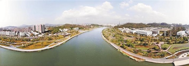 經(jīng)過整治的茅洲河水質(zhì)清澈、兩岸水清岸綠。