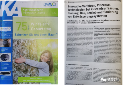 為紀(jì)念德國水協(xié)DWA成立75周年,DWA下屬的排水系統(tǒng)主委員會在德國水協(xié)刊物《Korrespondenz Abwasser Abfall》(污水與垃圾專業(yè)雜志)(2023年1月刊)發(fā)表了題為“排水系統(tǒng)現(xiàn)狀調(diào)查,規(guī)劃,建設(shè),運營,修復(fù)的創(chuàng)新工藝,方法,技術(shù)”的文章。