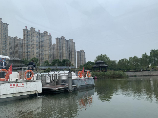 記者在穿紫河邊茂盛生長的蘆葦叢下,發現了“玄機”:蘆葦下布滿了天然濾料、松散石塊,還有各式滲水管、導流管。船碼頭這一片的雨水、路面污水,都要經過這片“生態濾池”過濾,才排入穿紫河。這樣自然有效的環保設計,讓人贊嘆。