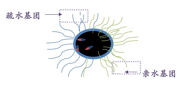 雙親性磁性janus粒子結構示意圖,表明它具有兩種親水疏水基團結構。