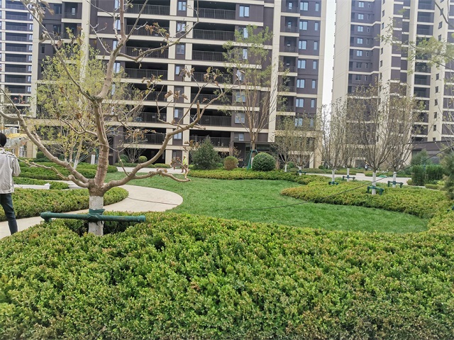 綠城集團(tuán)天津桂語(yǔ)聽(tīng)瀾項(xiàng)目位于空港經(jīng)濟(jì)區(qū)環(huán)河?xùn)|路與東八道交口處,項(xiàng)目類(lèi)型為住宅小區(qū),可用地面積61808.8平方米,通過(guò)設(shè)置下凹綠地、透水鋪裝等海綿設(shè)施,同樣實(shí)現(xiàn)了年徑流總量控制率≥75%的目標(biāo)。該項(xiàng)目道路均為平緣石,硬質(zhì)鋪裝豎向高于周邊綠地,雨水自然找坡匯流到下凹綠地內(nèi)。在滿足排水要求的同時(shí),該項(xiàng)目也強(qiáng)調(diào)與景觀緊密結(jié)合,喬木種植區(qū)局部下凹,景觀休憩區(qū)整體下凹,微地形起伏環(huán)繞,在有限的用地空間內(nèi)平衡功能與景觀需求,實(shí)現(xiàn)土地的高效利用,既能保護(hù)景觀植物,又能創(chuàng)造更多的層次和調(diào)蓄空間,豐富景觀效果,實(shí)現(xiàn)人與自然和諧共處。