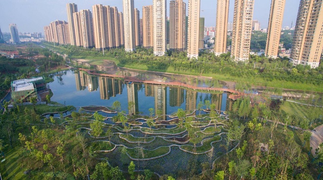 在河流中下游,建設城市“雙修”及海綿示范公園項目。項目采取PPP模式,由長沙市雨花區人民政府授權雨花國有資產運營集團為政府方代表,與社會企業組成聯合機構,中標PPP社會資本方負責項目實施??偼顿Y14.5億元,建設期3年,運營期15年。項目通過四大水處理系統,提升河道水質,實現留住水、凈化水、利用水。