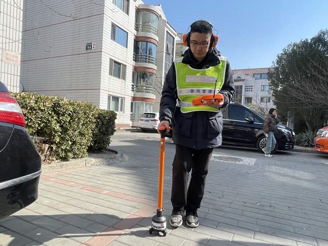 “順風(fēng)耳”專聽(tīng)管道異響 除了高科技,針對(duì)使用獨(dú)立計(jì)量區(qū)的社區(qū),供水管線漏損監(jiān)測(cè)也保留著傳統(tǒng)的人工監(jiān)測(cè)方式。周政介紹,當(dāng)獨(dú)立計(jì)量區(qū)向后臺(tái)發(fā)出報(bào)警后,工作人員根據(jù)衛(wèi)星掃描圖紙和地理信息系統(tǒng)劃定的范圍,使用聽(tīng)漏儀現(xiàn)場(chǎng)最終確定漏點(diǎn)的準(zhǔn)確位置。