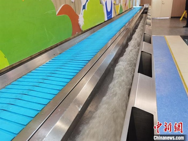走進(jìn)浙大城市學(xué)院三食堂,學(xué)生將食物殘?jiān)谷胧占蹠r,持續(xù)涌出的流水將殘?jiān)鼪_至設(shè)有過濾網(wǎng)的收集箱,過濾后的水又循環(huán)至殘?jiān)占郏^續(xù)使用。此過程中,較臟的水被排出洗碗機(jī)系統(tǒng),而安裝于收集槽上方的自來水出口,既方便洗手,也可補(bǔ)充沖洗水,實(shí)現(xiàn)“一水多用”。
