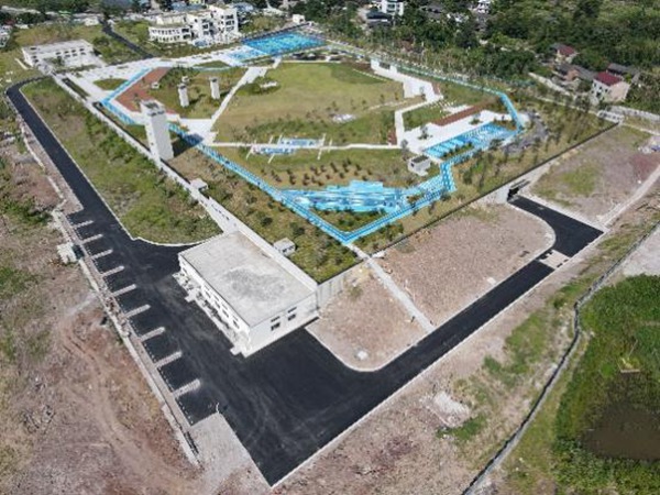重慶設(shè)計(jì)集團(tuán)有限公司市政設(shè)計(jì)研究院設(shè)計(jì)師介紹,項(xiàng)目為半地埋式污水廠,采用污水處理車間雙層加蓋半地埋的建設(shè)方案,車間負(fù)一層設(shè)置為各個(gè)污水處理構(gòu)筑物,車間一層為廠區(qū)運(yùn)行人員操作層,車間頂層設(shè)有景觀公園,在合理布置景觀的同時(shí),還建有籃球場(chǎng)、羽毛球場(chǎng)等體育健身設(shè)施。