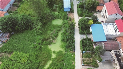 四嶺村8組地勢相對平坦,農(nóng)舍坐北朝南,呈一字排列,近年來,由于基礎(chǔ)設(shè)施建設(shè)相對滯后,生活污水都流到村口處約5畝大小的堰塘內(nèi),導(dǎo)致雜草叢生、臭味難聞,村民對此處都是避之不及。