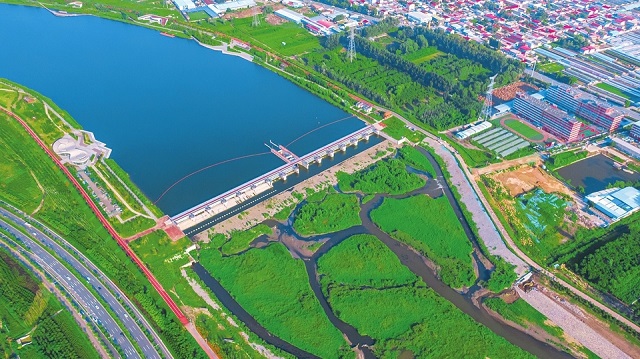 汾河治理三期工程與汾河百公里中游示范區(qū)交匯處。