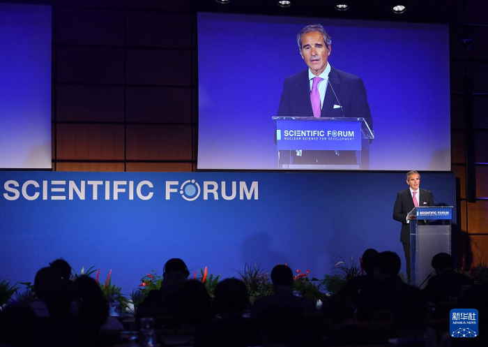 9月16日,在奧地利維也納,國(guó)際原子能機(jī)構(gòu)總干事格羅西在“原子用于水資源”科學(xué)論壇上致辭。新華社記者賀燦鈴攝